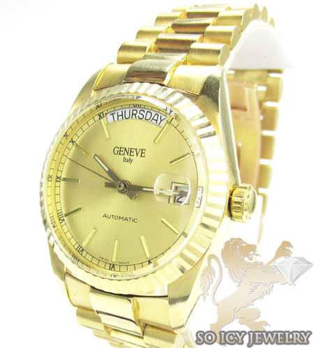 Buy Mens 14k Yellow Gold Geneve Automatic Watch Online At So Icy Jewelry