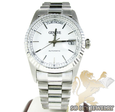 Buy Mens 14k White Gold Geneve Automatic Watch Online At So Icy Jewelry